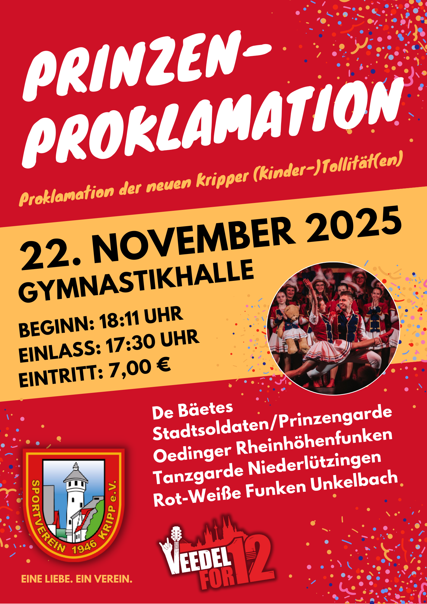 Am Samstag, 22. November, ist es wieder so weit: In seiner Gymnastikhalle im Sportpark „Am Querweg“ lädt der SV Kripp zur traditionellen Prinzenproklamation ein – dem Höhepunkt zum Start in die neue Karnevalssession.